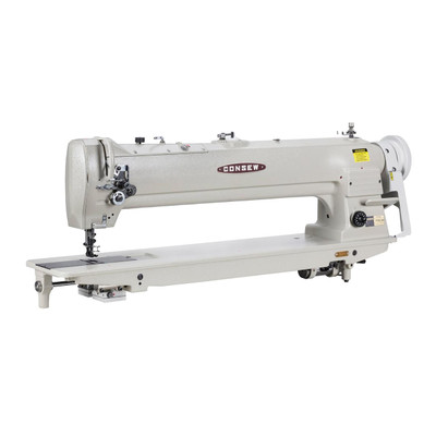 The Consew 4224RBALP is a heavy-duty, high-speed, long-arm walking foot machine designed for precision sewing on extra-heavy materials. Engineered for industrial applications, this model features a triple feed mechanism (needle feed, walking foot, and drop feed), 4 large vertical axis hooks, a puller, pneumatic foot lift, and an electronic reverse button next to the needle. Ideal for products like tarps and technical textiles, the 4224RBALP offers high performance and reliability in demanding sewing environments.