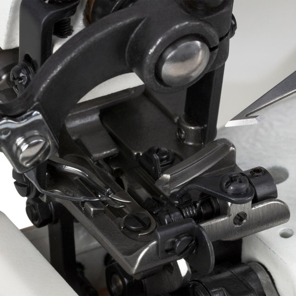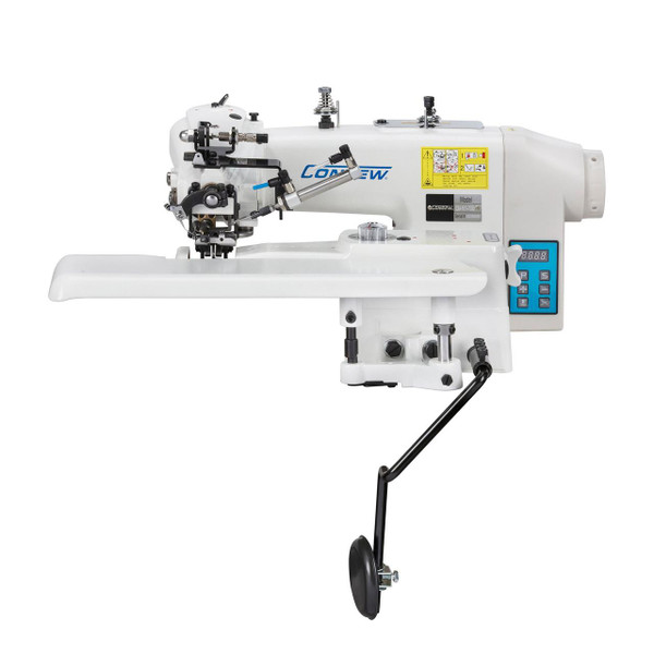 The Consew CM101-7DD is a single thread, chainstitch, blindstitch machine featuring a direct drive with an electronic auto-thread trimmer and fabric release. For those who prefer fewer automatic functions, consider the Consew Model CM-101-DD.