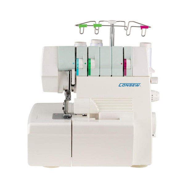 The Consew 14TU858 is a portable coverstitch machine, Two Needle, Two and Three Thread, with Differential Feed. For all coverstitch sewing applications. If you're ready to take your sewing to a new level, then you're ready for the Consew "Coverlock". It makes the decorative and professional touches easier than you ever thought they would be. The Consew "Coverlock" puts every feature or capability you could want at your fingertips.