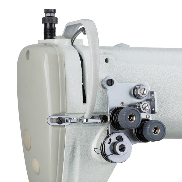 Vertical Axis Hooks, Roller Presser Foot, Reverse Feed, Safety Clutch, Offset Needles – Narrow Gauges Only