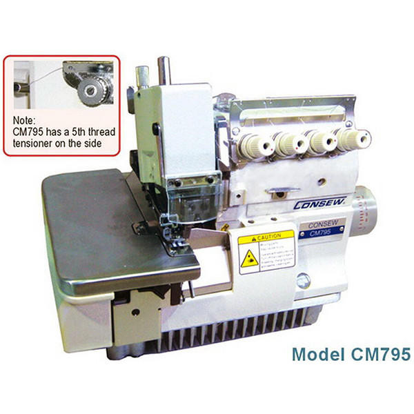 The Consew CM793/4/5 Series overlock sewing machine contains a variety of features that include, but are not limited to: Single Needle, 3 Thread, High Speed Overlock Machine, For overlock sewing of light to heavyweight materials with Fully Automatic Lubrication, Differential Feed and Pushbutton Stitch Regulator.