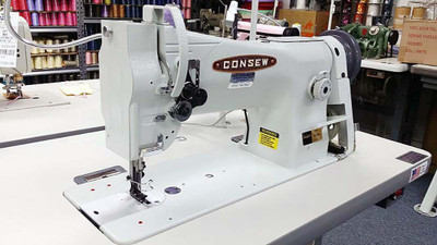 The Consew P1255RB Sewing Machine contains a variety of features the include, but not limited to: drop feed, needle feed, walking foot and is a high quality lockstitch machine.