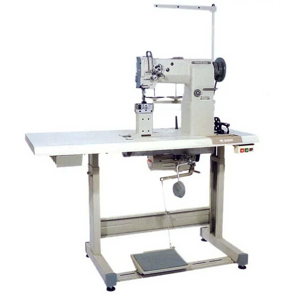 A post bed compound feed machine that is available in three different styles – single needle left side post sewing, single needle right side post sewing and double needle sewing. Standard features include large capacity sewing hooks, a dial type stitch regulator and reverse feeding lever. The machine can be used in the production of car seats, bags and cases, boots, and hand bags.