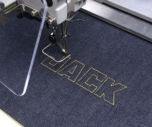 The machine is used for multiple sewing a repeatable pattern, such as sewing on labels, fastenings or decorative stitching. Equipped with a servo motor built into the machine head (direct drive system) and step motors – servo motor and a new solution of the transport mechanism, increase the quality of sewn patterns, smoother machine work, high accuracy and shorten the start and finish time of the sewing process.