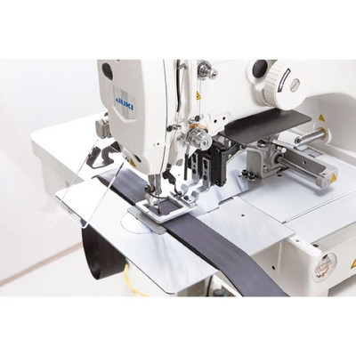 The machine with a slide-type thread take-up lever is designed for improved stitching with heavy threads tension. JUKI's unique active tension mechanism which has been re-designed specifically for heavy-weight materials, as well as the slide-type thread take-up lever which is suited for sewing heavy-weight materials, increase the maximum tension by 50% more compared to that of the standard models of the JUKI AMS Series machines. The new model improves seam quality (thread tension) for sewing seat belts and general heavy-weight materials such as container belts and bags.