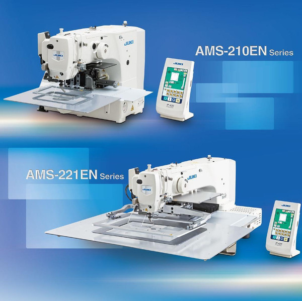 The AMS-210EN is an economically efficient model which has been designed to reduce power consumption. The sewing machine has adopted a direct-drive system by means of a compact AC servomotor that is excellent in energy transmission to drive the main shaft and has adopted an encoder-control system that drives the stepping motor with a minimum of power in accordance with the material thickness and stitches length to control the X-Y drive mechanism. Power consumption of the new AMS Series is reduced by 30% when compared with JUKI's conventional AMS-210E.