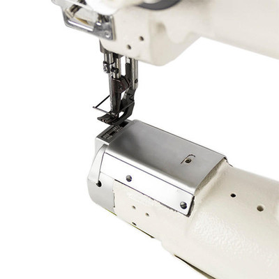 With the adoption of a new rectangular feed mechanism, an alternating vertical movement mechanism, and a unison feed mechanism, the machine can feed heavy materials powerfully and smoothly. Well tensed seams are consistently produced without pitch errors.