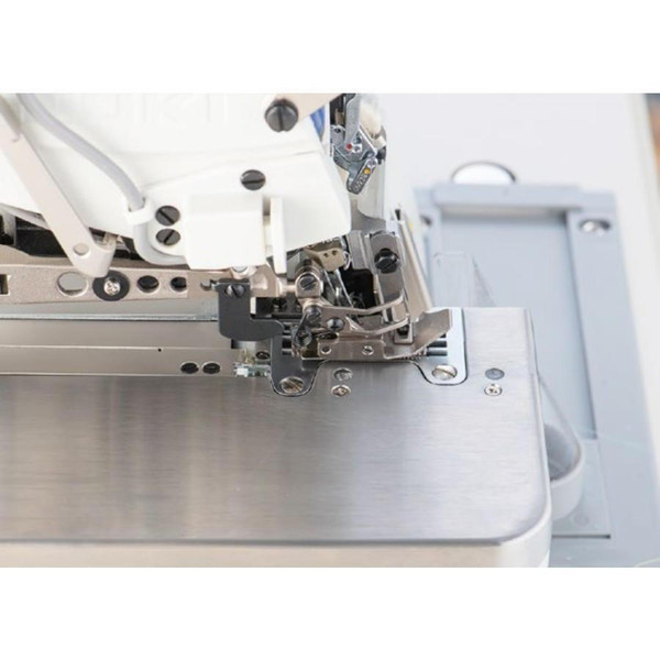 The most-advanced dry technologies, such as the special surface treatment applied to the major drive unit and the grease feeding method, contribute to higher durability. The machine does not splash oil after a long-period of use. The grease filler openings are newly provided for the sewing machine on two locations, i.e., one on the upper looper component and the other on the sewing machine frame, thereby improving maintainability.
