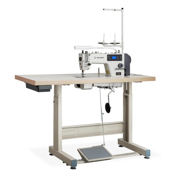 The single-needle lockstitch is highly popular for industrial sewing due to its strong and secure straight stitch. It operates at high speeds (up to 5,000 RPM), features automatic oil lubrication, and can be equipped with labor-saving devices like needle positioner, and auto back tacking. By purchasing the complete machine you are provided with the complete kit: table, stand and thread stand in Reliable style!