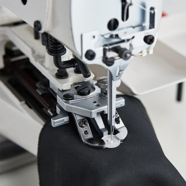 The 8100BS direct drive motor allows you to program the speed of the machine. This eliminates unwanted thread burn and allows for a more precise button sewing experience.