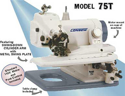 Portable blindstitch sewing machine with 1:1 to 2:1 true skip-stitch function Blindstitch machine. Adjustable stitch penetration for various types of fabric 1200rpm maximum speed, Blind stitch pedal Variable-speed foot controller 110V
